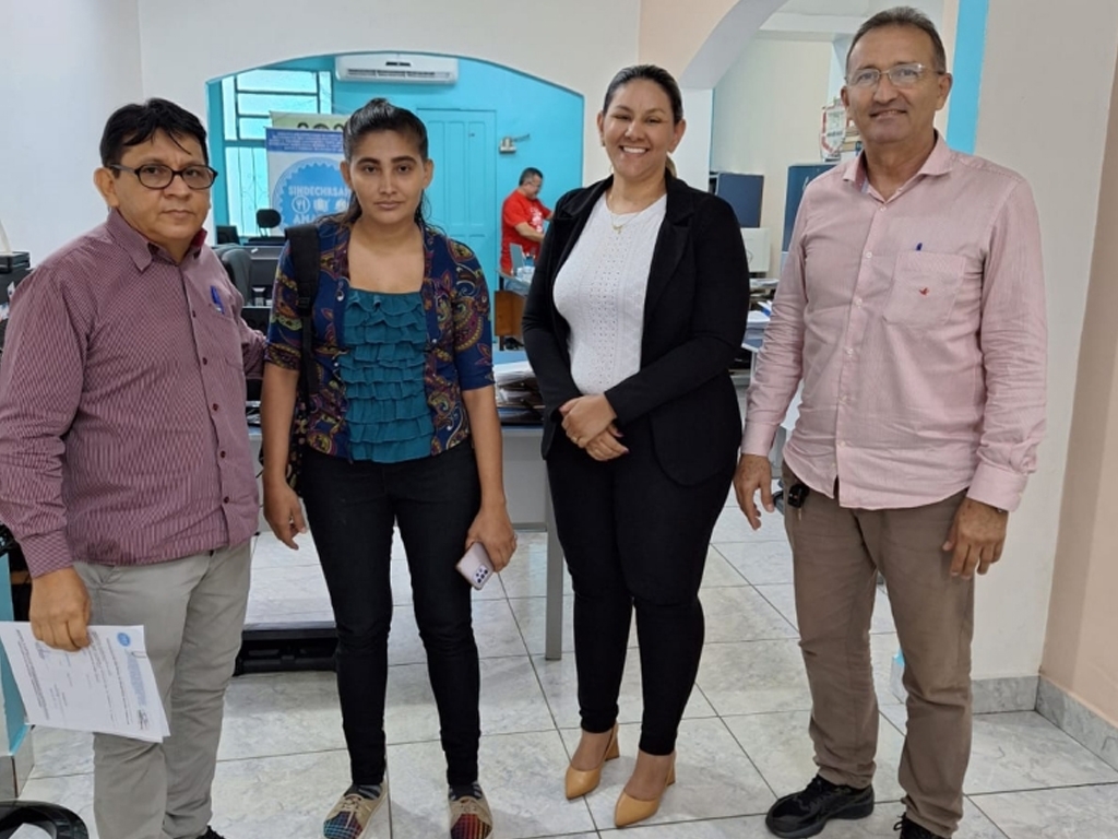 A diretoria do SINDECHRSAM realizando mais uma entrega do benefício de auxílio natalidade do projeto BSF, da convenção coletiva de trabalho para um funcionário da empresa IBIS STYLES, Nesta data dia 11 de julho de 2024. Uma conquista do sindicato representante dos trabalhadores em conjunto com o sindicato representante das empresas. A luta é nossa, a vitória é de todos. Gerson Almeida-presidente.
