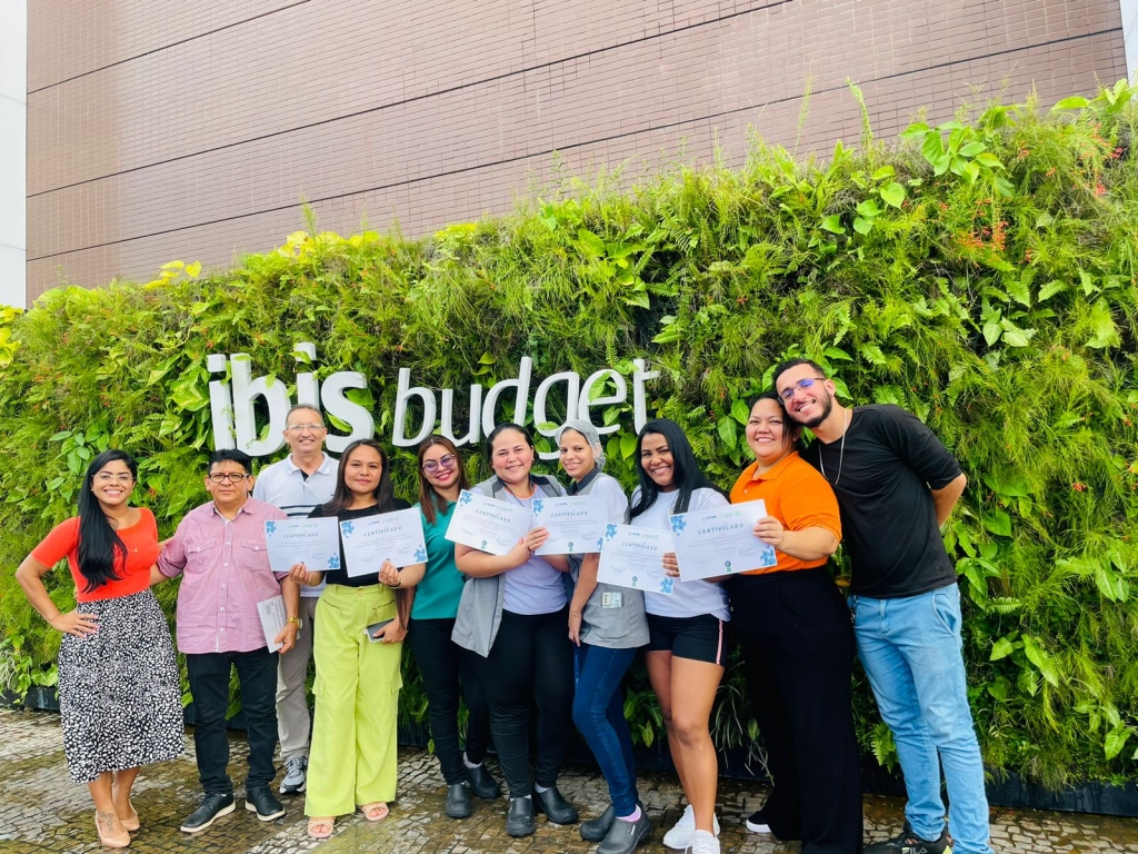 A diretoria do SINDECHRSAM entregou os certificados do curso de inglês básico aplicado a Serviço Turístico em 30 de novembro de 2023, nas dependências do Ibis hotel Djalma Batista, uma propriedade da Accor.