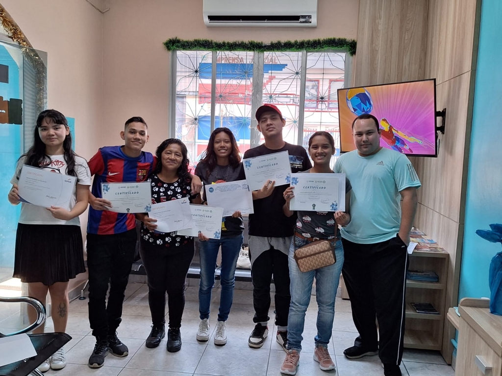 A diretoria do SINDECHRSAM, em mais uma entrega dos certificados do curso de inglês básico aplicado a Serviço Turístico, nesta data, dia 19 de dezembro de 2023.