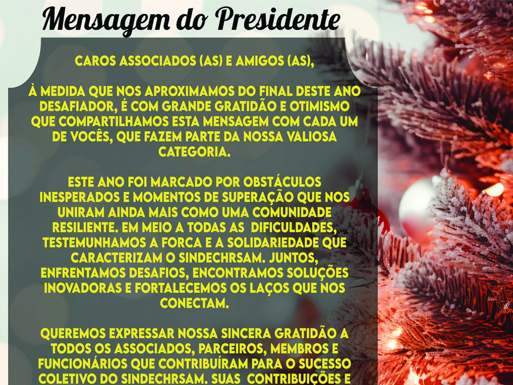 A diretoria do Sindechrsam, homenageia nesta data 15 de novembro de 2023, dia da proclamação da nossa República, um País de união e reconstrução para o povo brasileiro. Viva o Brasil, viva a democracia, é a homenagem da nossa categoria através do sindicato profissional.