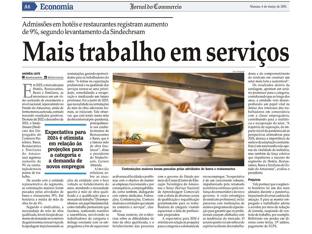 Sindicato na mídia, sobre o aumento do turismo na região e impactos positivos no setor.