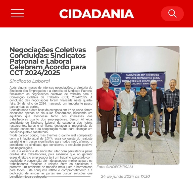 A diretoria do Sindicato Patronal finalizaram as negociações coletivas de trabalho para a Convenção Coletiva de Trabalho (CCT) 2024/2025. O acordo foi firmado nesta quarta-feira, 24 de julho de 2024, marcando um importante passo para ambas as partes.