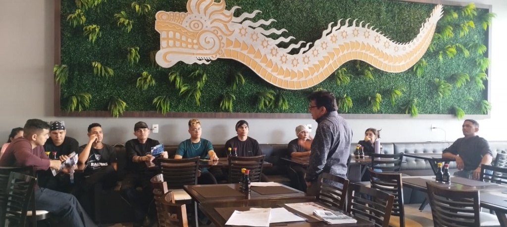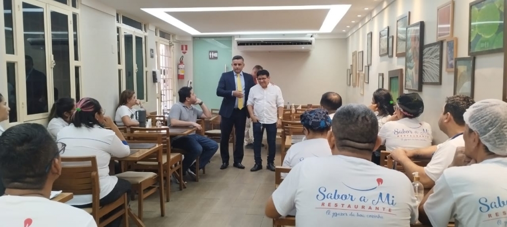 A diretoria do SINDECHRSAM em assembleia de base desta vez com os trabalhadores do restaurante Kin Sushi...